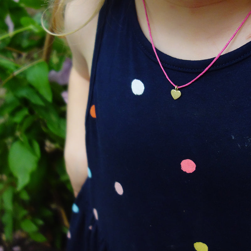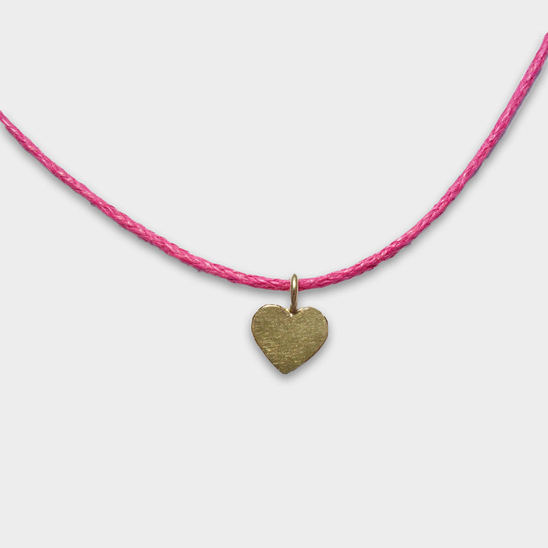 Herzanhänger aus 750/00er Gelbgold an einer Kette aus gewachstem Baumwollband. Ein täglicher Begleiter, der so federleicht am Hals liegt, dass man ihn gar nicht mehr ablegen möchte.