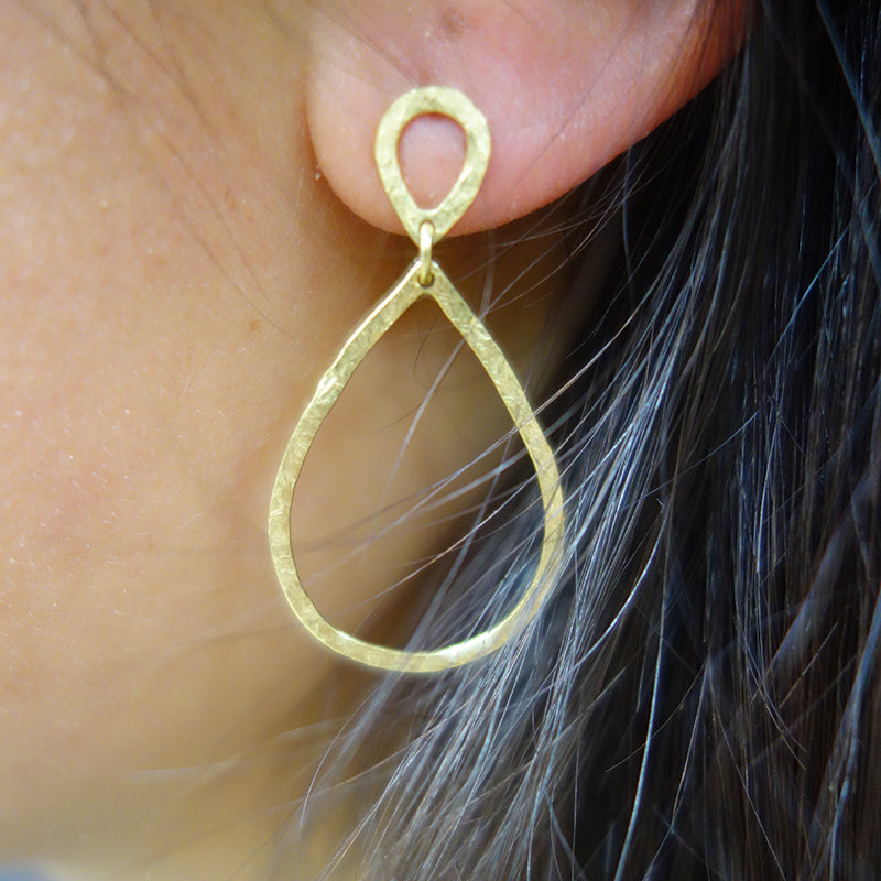 Die federleichten Drop-Ohrhänger mit Stecker aus 18 karätigem Gelbgold sind schlicht und elegant zugleich.