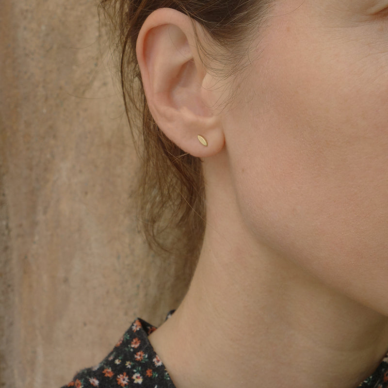 Mit der Größe eines Reiskornes sind unsere Ohrstecker Rice aus 18 karätigem Gelbgold der perfekte tägliche Begeleiter an deinem Ohr.